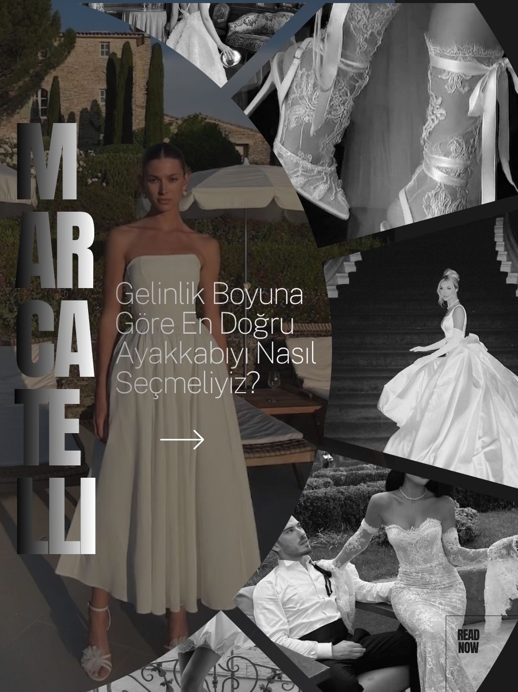Bir gelinin dış görünüşünde en kritik detaylardan biri vücut oranlarını doğru yansıtmaktır. Biz Marcatelli olarak biliyoruz ki, gelinliğin bittiği nokta ile ayakkabının başladığı yer arasındaki mesafe bacak boyunuzu uzun veya k...