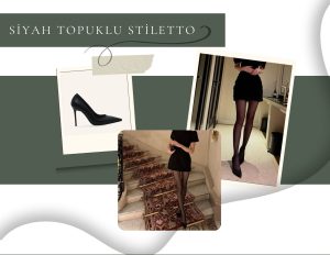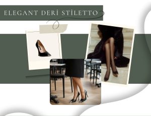 Bu stiletto en iyi sonucu diz hizasında veya midi boy, düz kesim ya da hafif A-form, straplez, kare yaka veya kapalı yaka siyah elbiselerle verir.